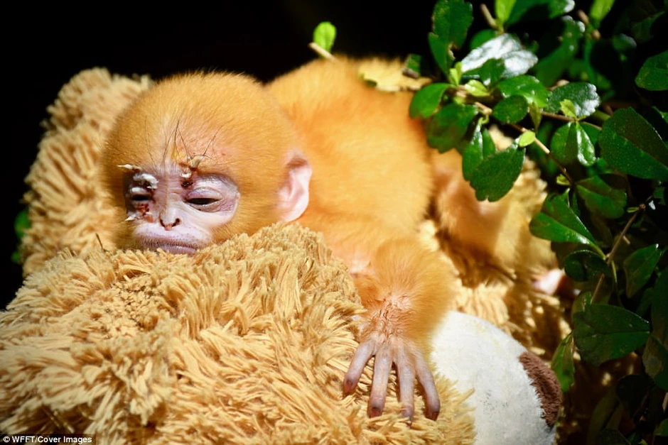 Siročetu majmuna, čiju majku su ubili divlji psi, staratelji su dali plišanu igračku koja imitira njegovog roditelja, i od nje se više ne odvaja.