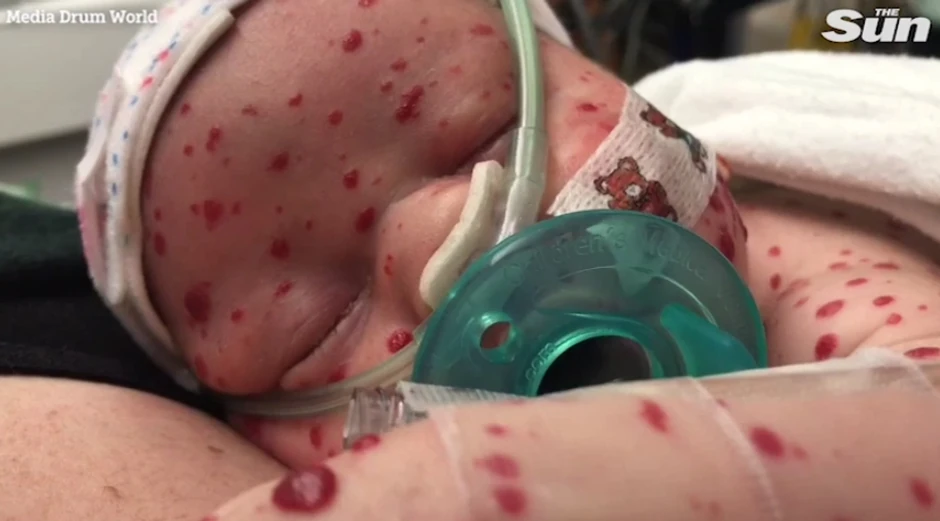 Da je mali Dominik zaista poseban govori i njegov izgled. Dečak je rođen sa crvenim tačkama po telu, za koje doktori kažu da nema nikave veze sa njegovim zdravstvenim problemom. Nije poznato da li će crvene pegice nestati ili ne, ali njegova mama se nada da hoće.