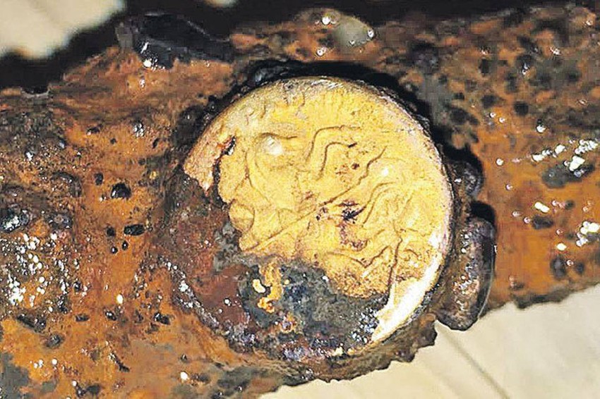 Navodi se da je novčić bio zakačen za metalni klip duboko u mulju rečnog korita i da se ispostavilo da je u pitanju zlatni ugorski novčić iskovan u vreme vladavine ruskog cara Borisa Godunova (1598-1605).