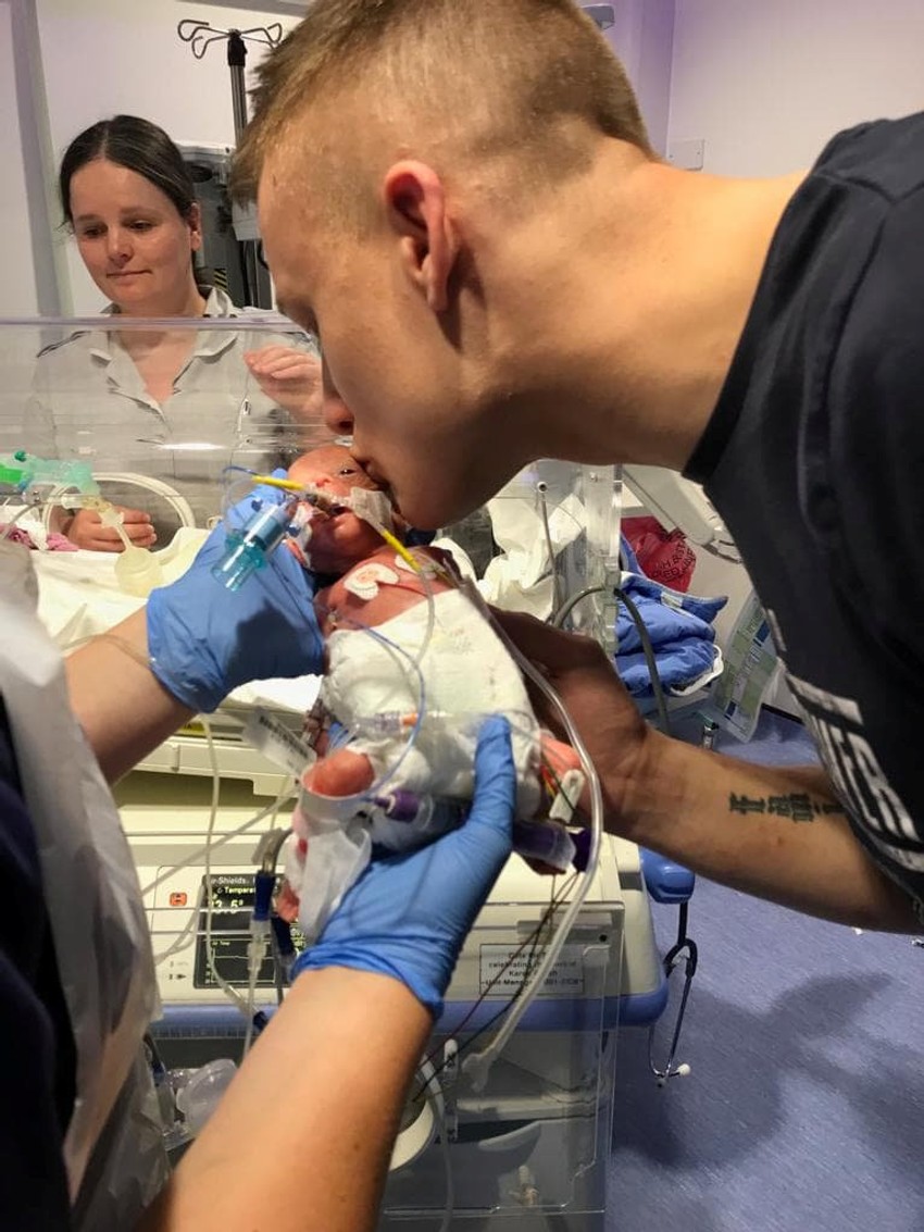 Izabela je ležala dve nedelje u inkubatoru kad su lekari najzad dozvolili majci i ocu Rajanu Evansu da je nežno pomiluju. Međutim, usledio je novi šok: utvrđeno je da ima perforaciju u gastro-intestinalnom traktu i morali su da je operišu.