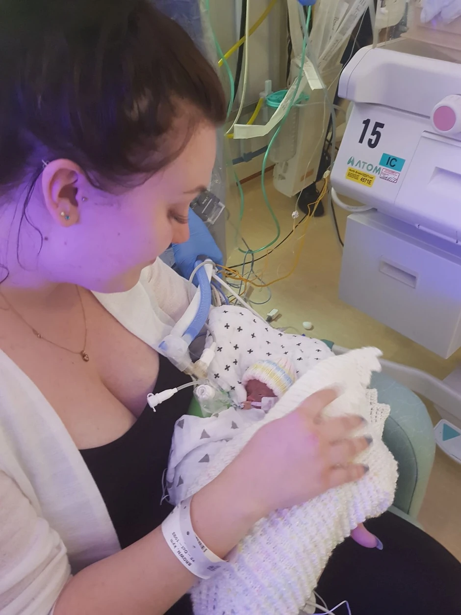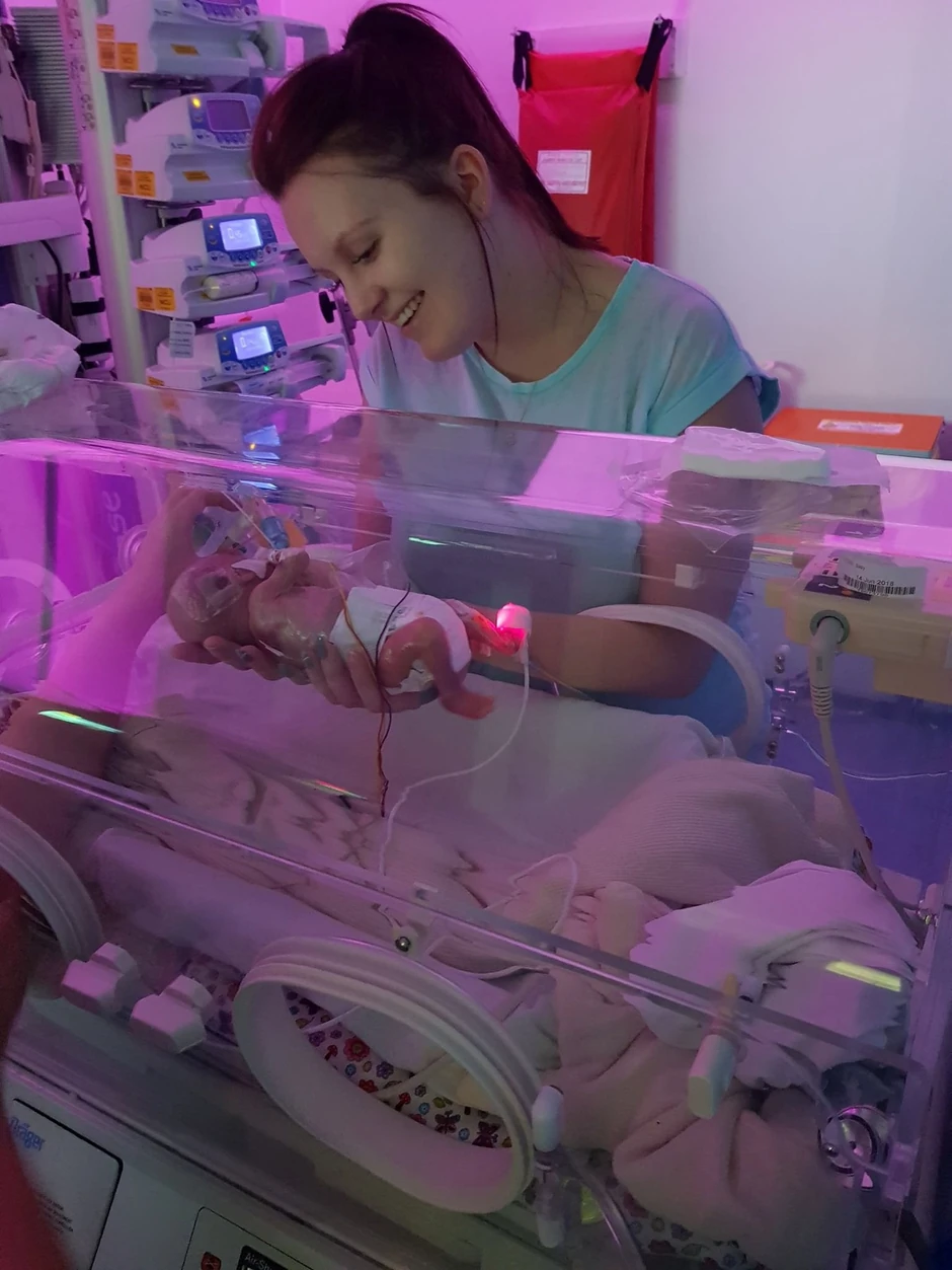 Majku Kim Braun iz Bišops Kliva, u Velikoj Britaniji, morali su da porode carskim rezom u dvadeset četvrtoj nedelji trudnoće, zato što je patila od preeklampsije, veoma opasnog rasta krvnog pritiska u trudnoći. Prevremeno rođena devojčica bila je teška samo 340 grama, a lekari su šanse za njeno preživljavanje procenili na pet odsto.