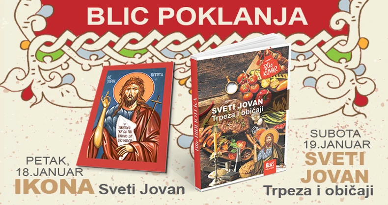 Povodom obeležavanja ovog praznika "Blic" vam poklanja dva poklona. U petak, 18. januara, svaki čitalac dobija ikonu Svetog Jovana, dok u subotu, 19. januara, uz dnevno izdanje "Blica" na dar i specijalni kuvar “Sveti Jovan – trpeza i običaji”, sa pričom o običajima i tradiciji koja se vezuje za ovaj praznik, kao i predlozima za slavsku trpezu.