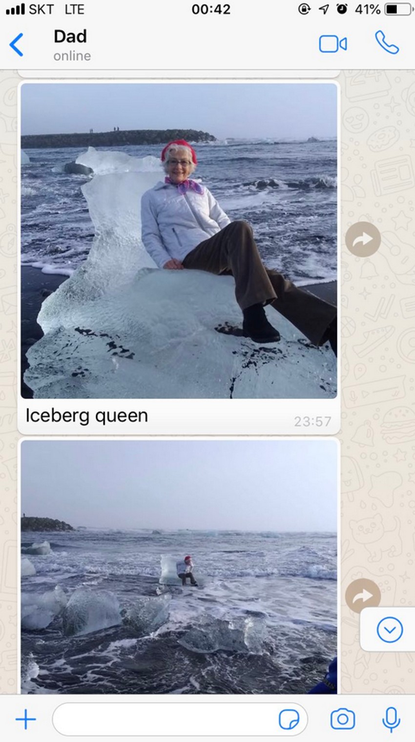 Džudit Streng izjavila je kako joj je ovako oblikovana santa leda, jednostavna za sedenje, izgledala zabavno. Dok su ona i njen sin Rod Streng putovali Islandom, zastali su na Dajmond bič plaži u Jokulsarlonu za fotografiju na onome što je izgledalo kao ledeni tron.