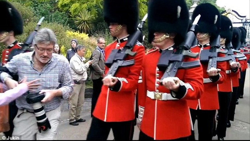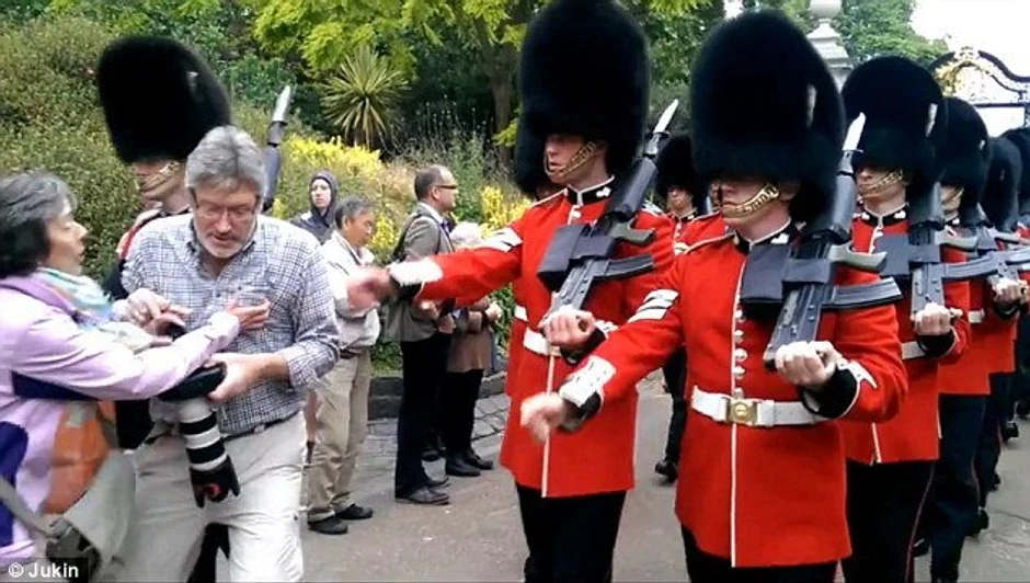 U ponedeljak je na Jutjubu osvanuo video u kome turistu zadubljenog u razgovor udara gardista iz kolone koja maršira ispred Bakingesmske palate.