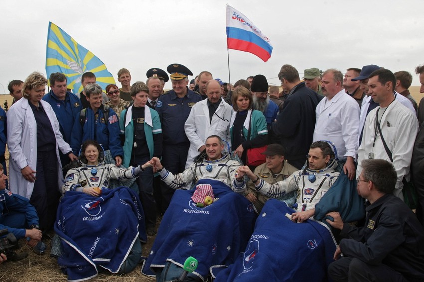 U međuvremenu, lansiranje dvoje Rusa i jednog Amerikanca sa kosmodroma Baikonur u Kazahstanu, koji Rusija iznajmljuje, bilo je odloženo za nedelju dana zbog tehničkih problema. Lansiranje je uspešno završeno početkom nedelje.