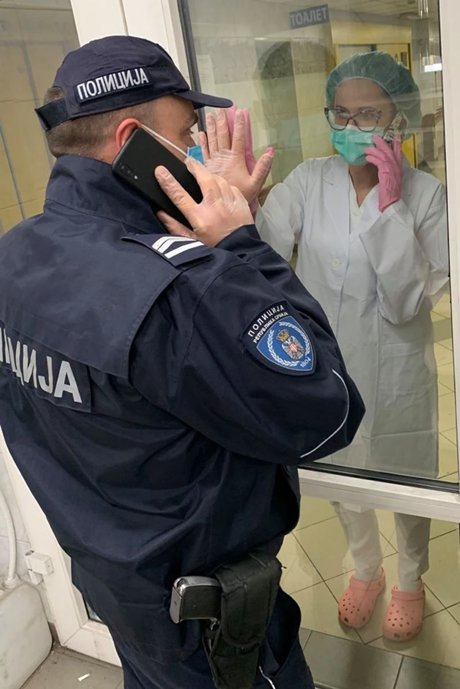 Jedno od njih čuva živote u bolnici, drugi na ulici. Oboje su na prvoj liniji borbe protiv korona virusa. On, u uniformi pripadnika policije Srbije, ona u belom mantilu. Ako na svetu postoji jedna slika koja je toliko jaka da pokaže požrtvovanost, bezrezervnost i rešenost, čitavih porodica koje obavljajući svoje poslove, rizikuju svoje zdravlje, onda je to ova iz Beograda.