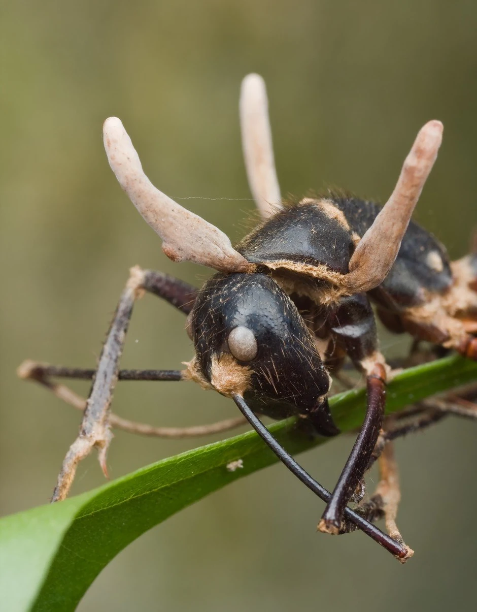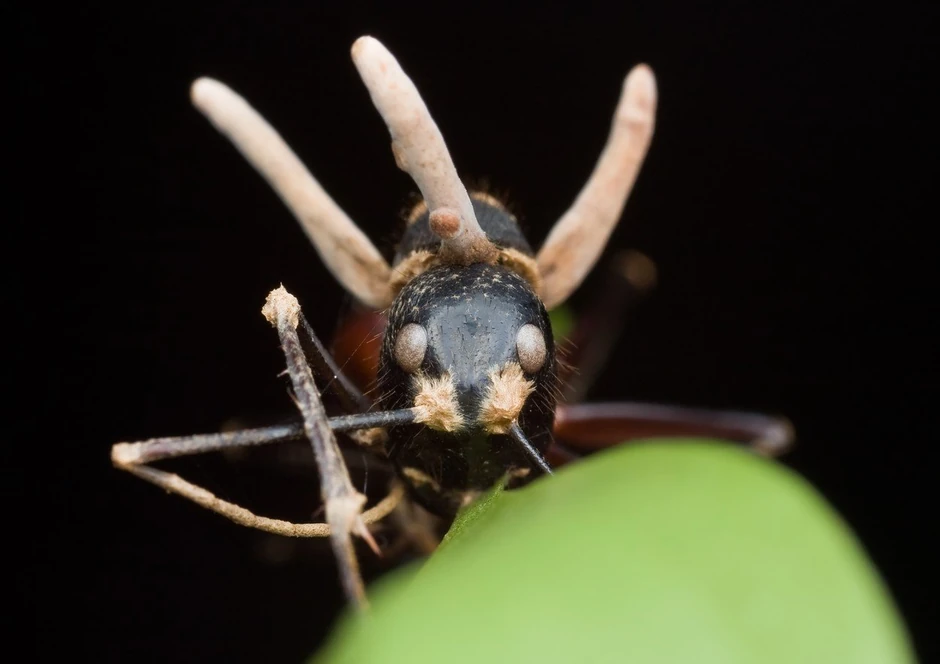 Autorka studije Kolin Mengold ističe da gljivice ne napadaju direktno mozak mrava, već se šire u mišićima donje vilice ovih insekata. Ona i njen tim su otkrili da inficirani mišići ispoljavaju hiperkontrakciju, odnosno da mravi čvrsto svojim vilicama stegnu žilu lista ili grančicu.