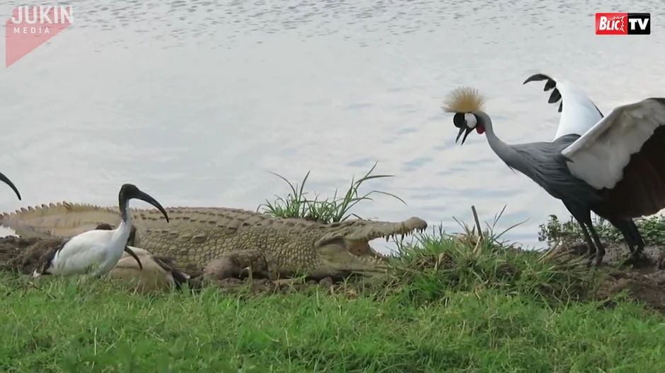 Snaga očigledno nije presudna u divljini već hrabrost. To najbolje pokazuje borba ovog krokodila i ptice krana koji su snimljeni uAfrici. Ptica se odvažno šepurila i na kraju krenula u napad na veliku zver, ne odustajući nijednog trena od svoje zamisli.