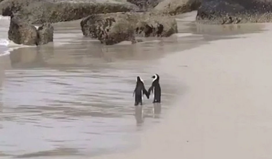 Na Tviteru se pojavio video-snimak jednog turiste koji je zabeležio druženje dva pingivna na jednoj plaži u Južnoj Africi.
