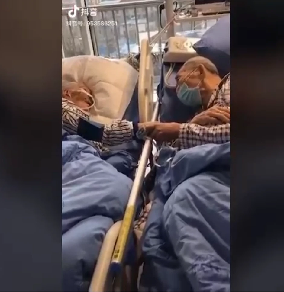 Na društvenoj mreži Tviter jedan korisnik objavio je video koji prikazuje dvoje 80-godišnjaka obolelih od ovog virusa, a u naslovu tvrdi da su par. Video prikazuje baku i deku u bolničkim krevetima sa maskama na licu kako se drže za ruke, dok je deka, kako se čini, jako zabrinut i pokušava da ohrabri svoju saputnicu.