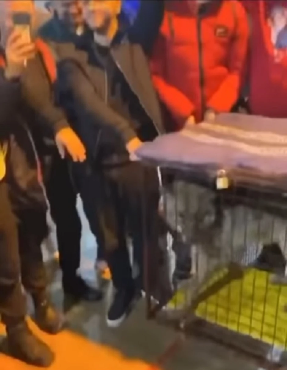 Na snimku koji se proširio društvenim mrežama, vidi se kako nekoliko muškaraca donosi kavez sa životinjom pred prepunu salu, kao i muškarac koji pokušava da sedne na kavez dok okupljeni viču i navijaju, a životinja se preplašeno grči i vrti u krug.