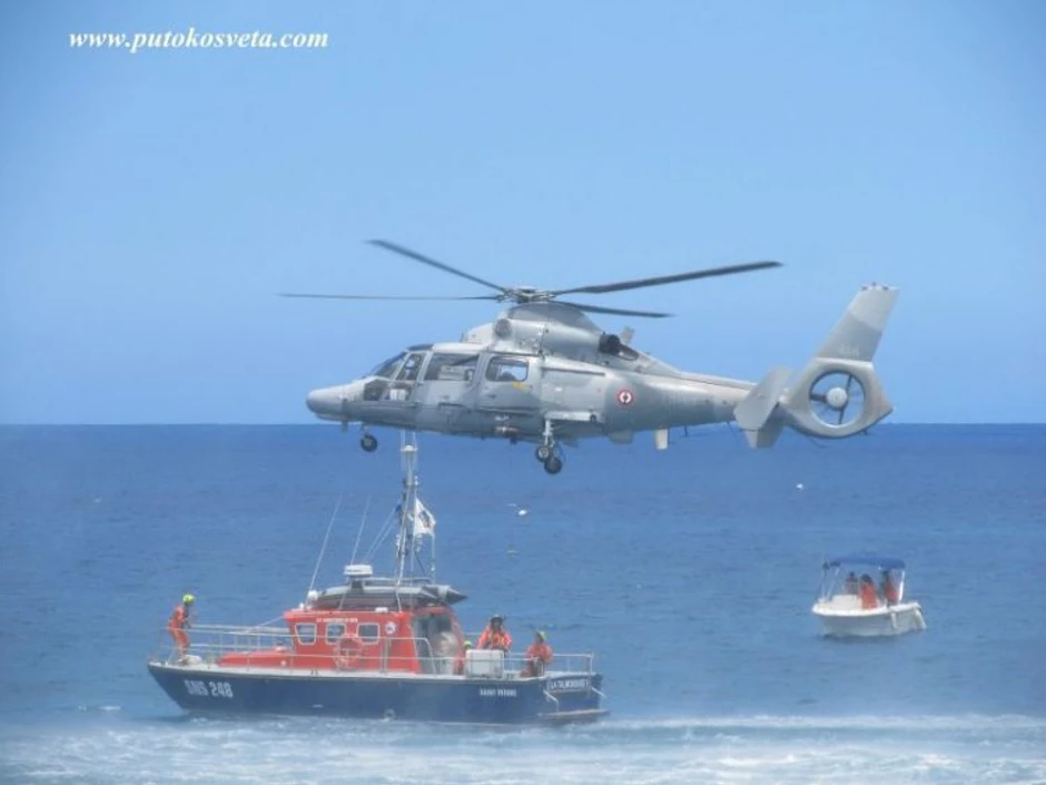Buku, žamor i nadvikivanje prodavaca na trenutak je utišala vojna vežba spasavanja žrtava iz okeana helikopterom.
