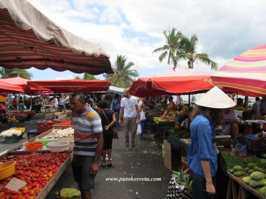 Đumbir, marakuja (fruit de la passion), mango, batat (slatki krompir), fruit à pain (hlebovac) šarenili su se ispred nas na tezgama, dok smo moja nova prijateljica i ja kupovali šta nam je trebalo za ručak.