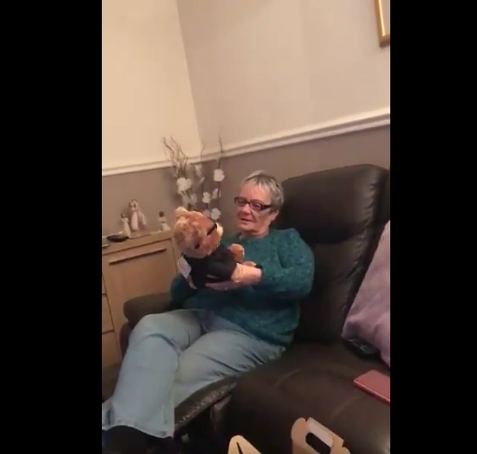 Ovaj snimak prikazuje srceparajući momenat kada baka plače, pošto je čula glas svog pokojnog muža iz medvedića, koji joj je poklonila unuka.