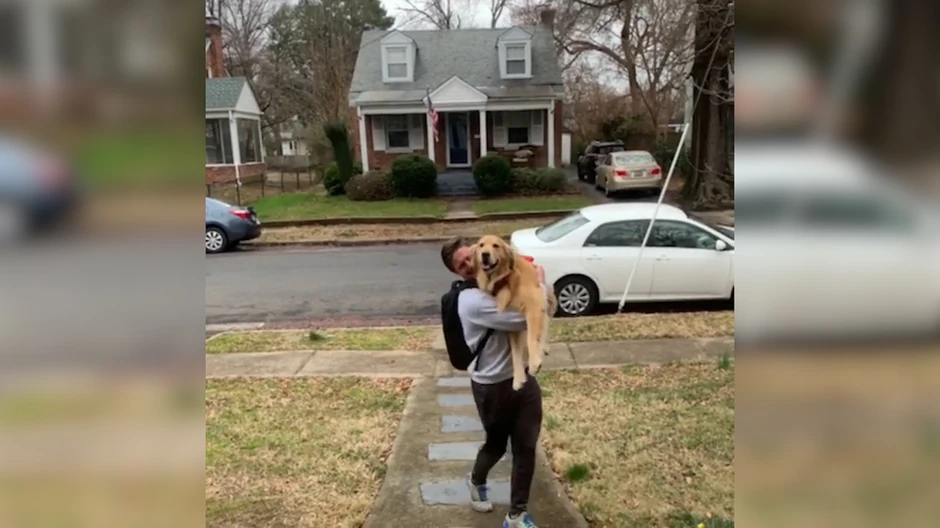 Na snimku koji je nastao u Ričmondu vidi se kako retriver po imenu Rili, čim je spazio svog vlasnika, odškrine vrata i potrči mu u zagrljaj, a skok koji je napravio tom prilikom, oduševio je mnoge zbog čega je video i postao viralan.