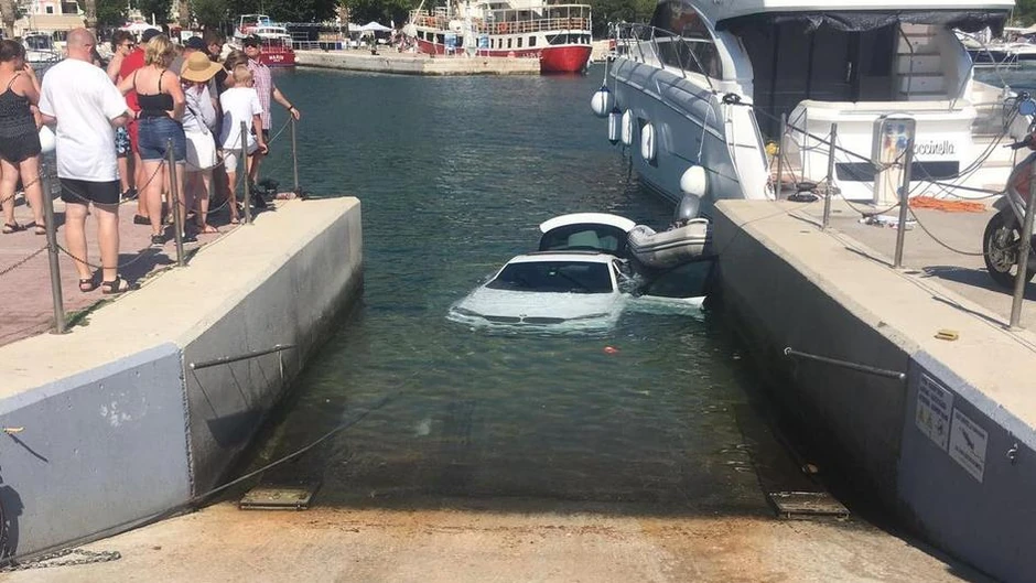 Oni su dovezli kola do prilaza moru kako bi s prikolice porinuli gumeni čamac, ali im je automobil proklizao zbog nagomilanih algi i skliznuo u more zajedno sa čamcem.