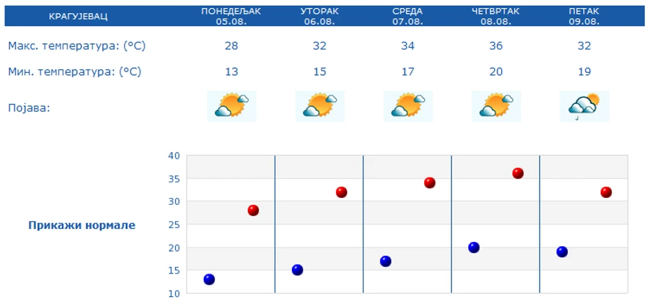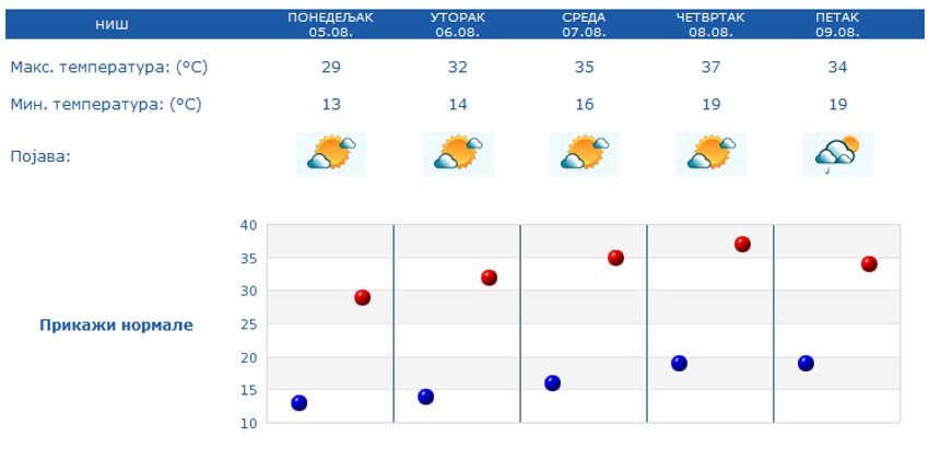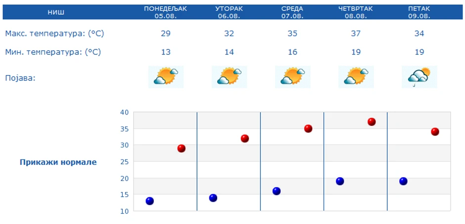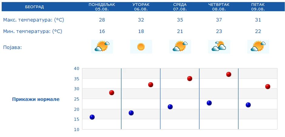 Ipak, tek u četvrtak nas očekuje pravo tropsko vreme kada meteorolozi Republičkog hidrometeorološkog zavoda predviđaju da će u Beogradu biti čak 37 stepeni, što će bez dileme biti najtopliji dan u 2019. godini.