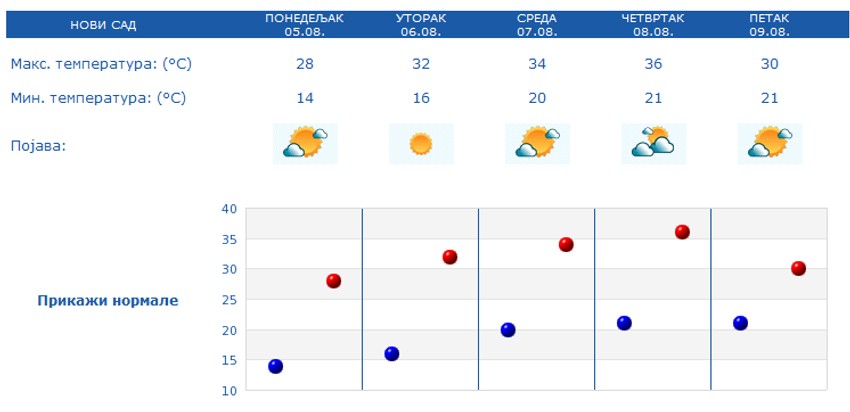 U petak i za naredni vikend očekuju nas maksimalne temperature koje bi mogle biti umerenije, u intervalu od 25 do 31 stepen, ali da to neće dugo trajati potvrđuju sve prognoze, kao na primer prognoza na Bi-Bi-Siju (BBC).