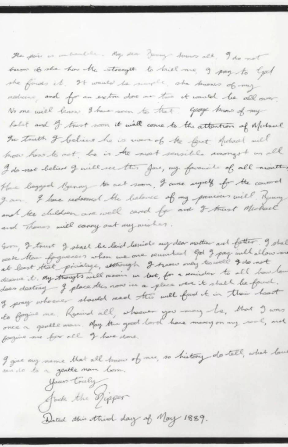 "Dao sam svoje ime koje svi znaju, da istorija govori šta ljubav može da učini rođenom džentlmenu. S poštovanjem, Džek Trbosek.“