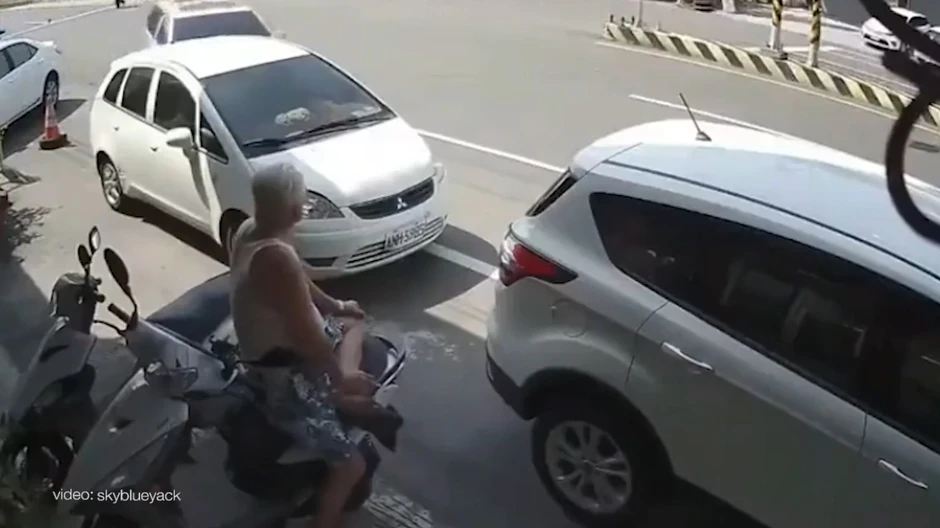 Snimak divljačke vožnje i ludačke sreće dekice koji je sedeo na vespi pogledajte u videu u okviru teksta.