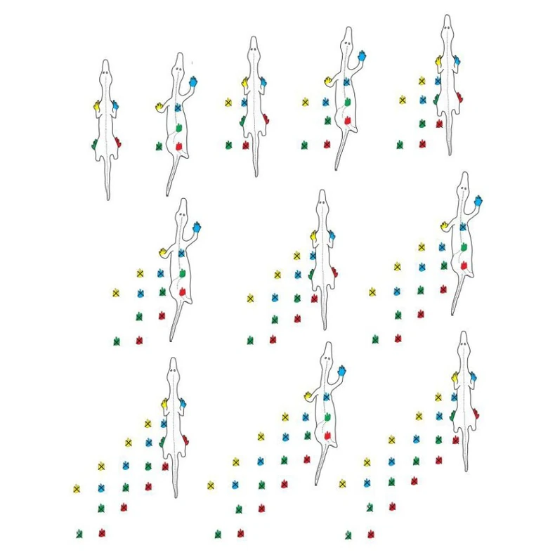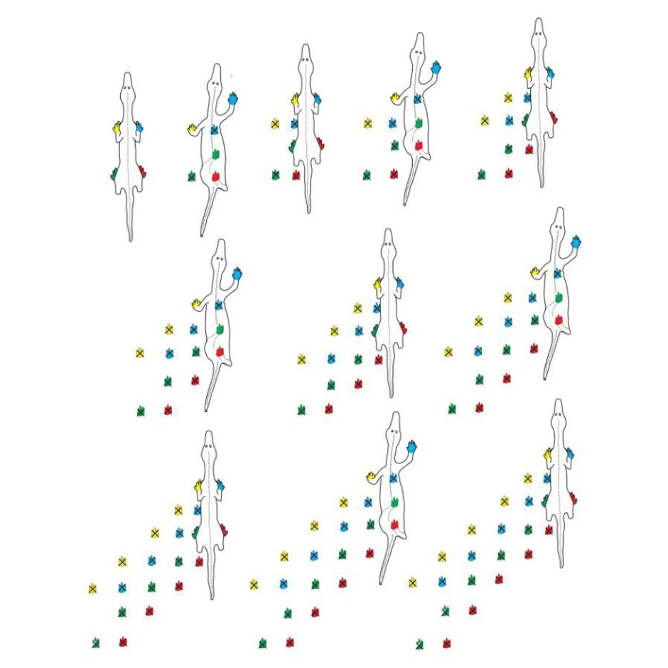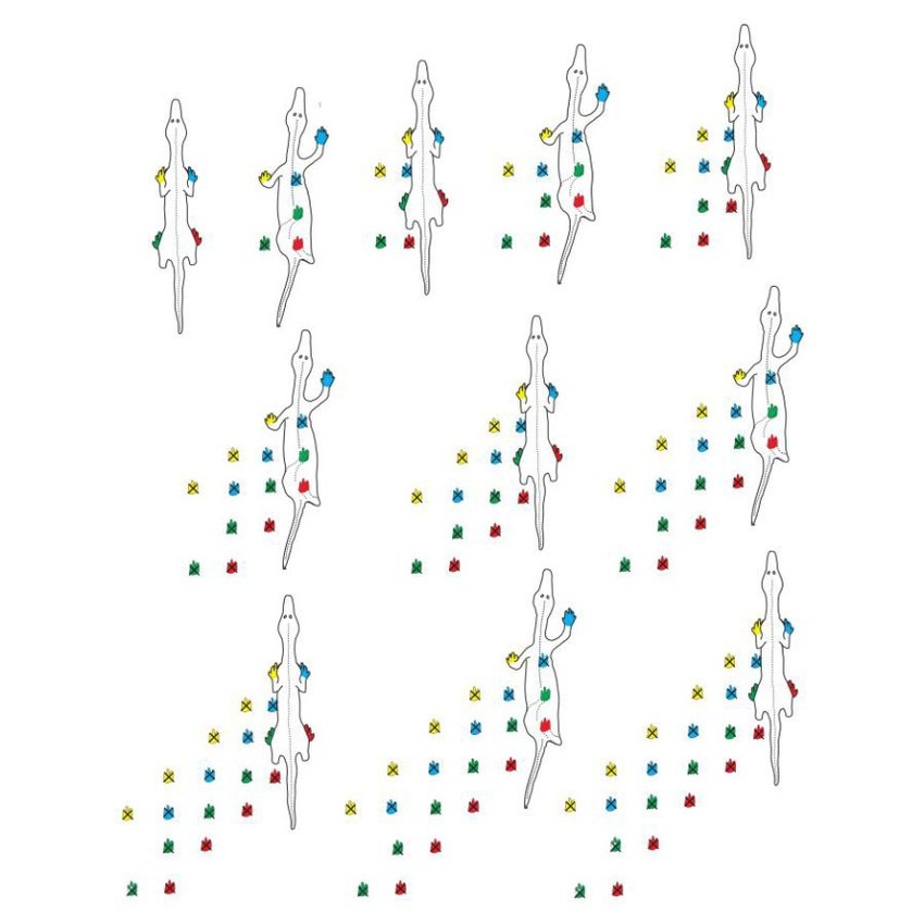 Raspored tragova ukazivao je na to da je životinja hodala postrance ili da su dve životinje hodale jedna pored druge, što se "kod vrste slične gušteru ne bi očekivalo".