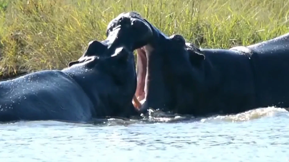 Dvojica mužjaka nilskog konja rešili su da odmere snage u plićaku: