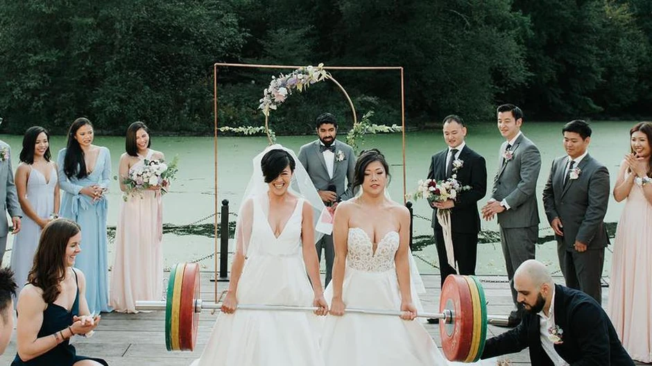 Mnogi imaju različite kreativne ideje za svoje venčanje, a Zina Hernandez (27) i Lisa Jang (28) svakako spadaju među originalnije mlade. One su pre razmene zaveta podigle teg duginih boja težak 253 kilograma.