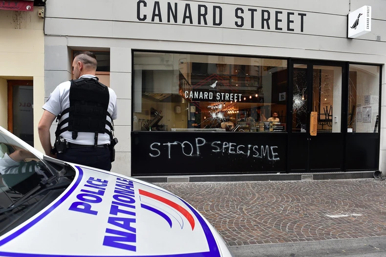 Prema podacima udruženja francuskih mesara, tokom poslednjih nekoliko meseci širom Francuske 15 mesara gađano je lažnim mesom, dok su na izlozima desetine mesara osvanuli grafiti poput "stop ubijanju". Takođe, neretko se mogu videti i grafiti "No speciesism".