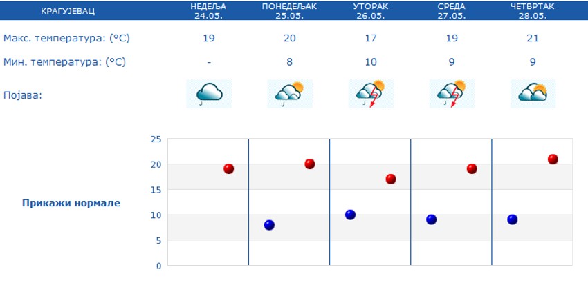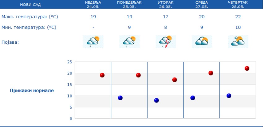 Prestanak padavina očekuje se od četvrtka, kada će najviša dnevna temperatura biti 21 stepen.