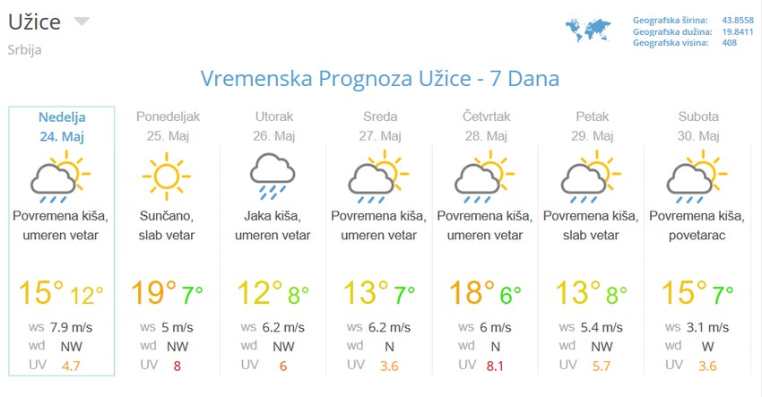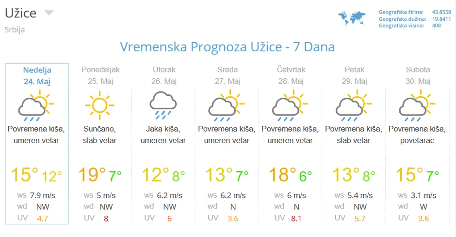 U Užicu se očekuje najviša dnevna temperatura danas 12 stepeni, sa pljuskovima i grmljavinom.