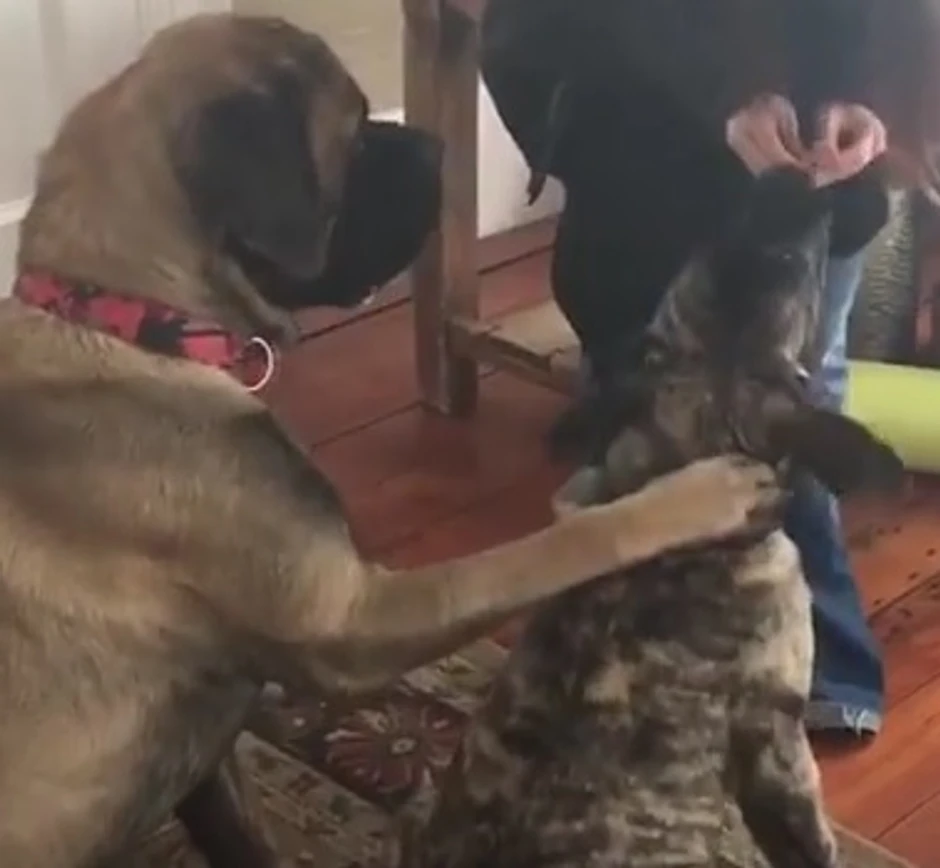 Zato je Rufus preuzeo na sebe i šapom spustio štene u sedeći položaj što ne samo da im je omogućilo da dobiju grickalice, već je izazvalo i posebno oduševljenje vlasnika.