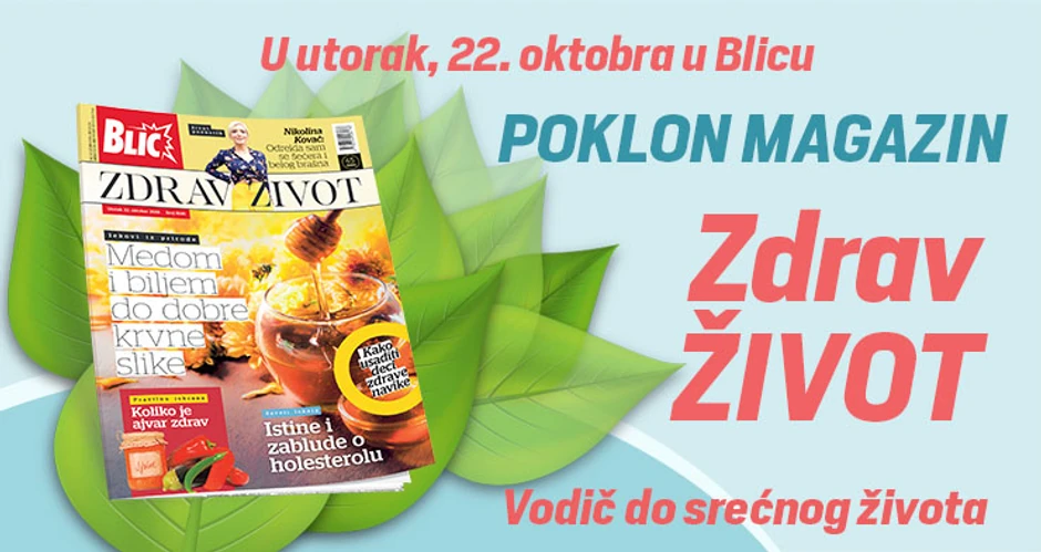 U utorak, 22. oktobra uz dnevno izdanje “Blica” na poklon vas čeka magazin Zdrav život, sa novim, zanimljivim pričama i savetima u vezi sa zdravim navikama.