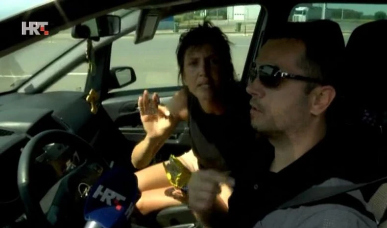 Ekipa HRT-a iznerviranoj putnici pokušala je objasniti da oni nisu iz policije nego iz HRT-a, ali nisu uspeli, piše "jutarnji list", te im je gospođa poručila: