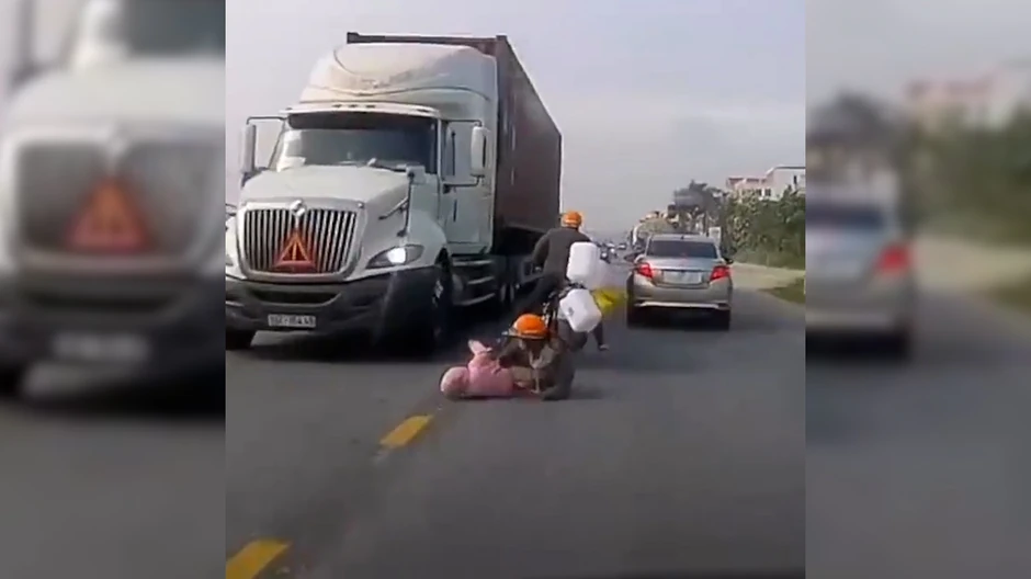 Prizor se, naime, dogodio u Vijetnamu kada su tri osobe snimljene na motociklu, a jedan automobil koji je nesavesno vozio pored njih, zakačio je jednog dvotočkaša i izazvao pad žene koja je u korpi vozila bebu.