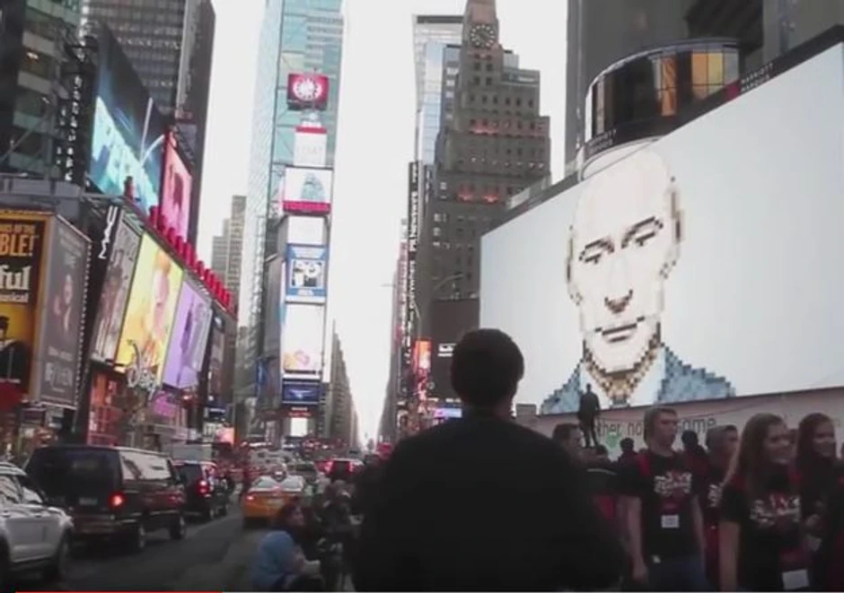 Lik Vladimira Putina pojavio se iznenada na velikom reklamnom ekranu na Tajms skveru u centru Njujorka i namignuo Njujorčanima, vidi se na snimku nedavno objavljenom na Jutjubu. Za sada nema objašnjenja šta je uzrok pojavljivanja lika ruskog predsednika ili je u pitanju montiran video.