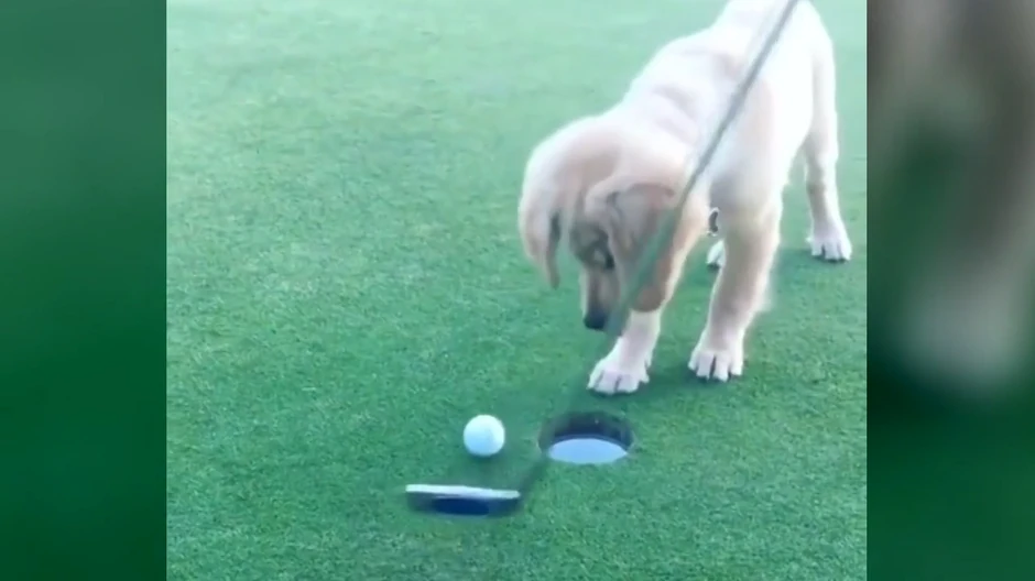 Ovo preslatko štene prosto obožava golf, toliko da posle dobrog poteza ima i uvežbano slavlje: