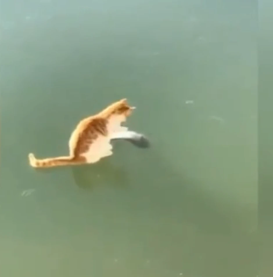 Jedna maca iz Šenjanga u Kini našla se na povšini zaleđenog jezera kada je primetila ribu ispod površine vode. Prvobitna euforija usled besplatnog ručka, splasnula je kada je shvatila da ipak neće moći da dođe do hrane, koliko god šapama udarala po površini jezera i po zaleđenoj ribi.