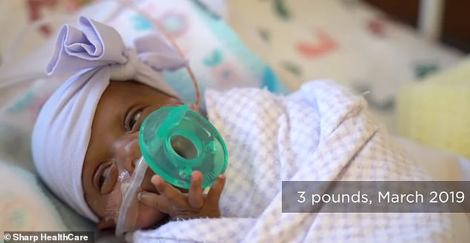 Sejbi, koja je rođena čak tri meseca pre vremena u Bolnici za majku u dete "Šarp Meri Birč" u San Dijegu (Kalifornija), na rođenju je težila svega 245 grama, a kada je početkom meseca izašla iz bolnice solidnih 2,5 kilograma.