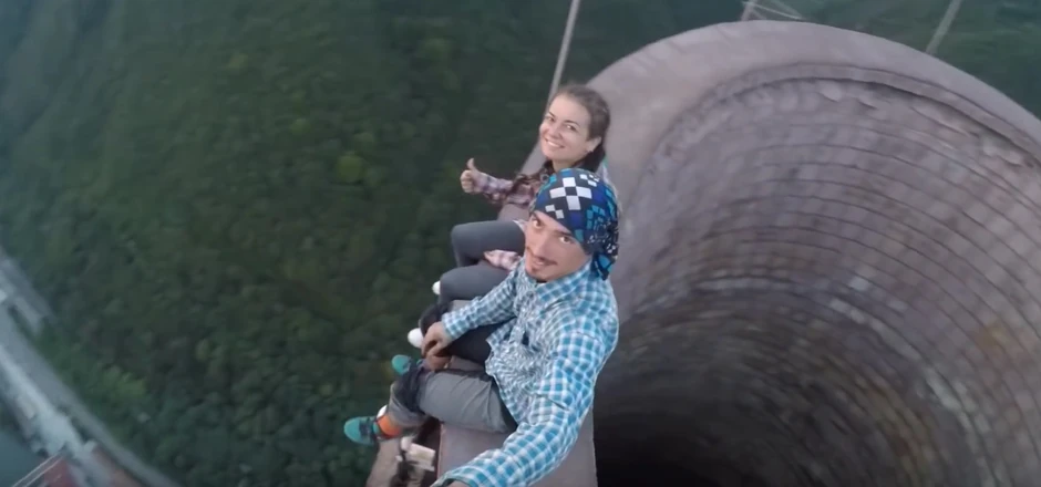 Momak i devojka popeli su se na najviši dimnjak u Evropi bez ikakve sigurnosne opreme, kako bi napravili selfi na 365 metara visine, piše “Dejli mejl”.
