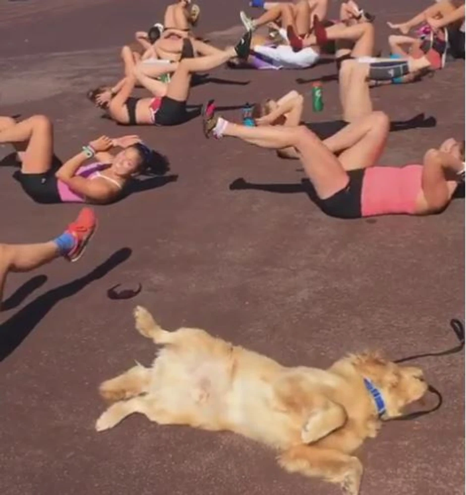 Kuca Riptajd se našla među devojkama iz veslačkog tima sa Stenforda, koje su vredno radile na svojim trbušnjacima, pa je pas odlučio da malo poradi i na svojima, piše HuffPost.