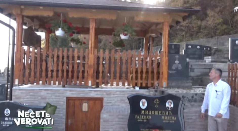 - Meni je to sve normalno i prirodno. Razgovarao sam sa monahinjama više manastira i one su mi rekle da moj postupak nije bogohuljenje. Dole nije betonirano, već se nalazi zemlja u koju će me jednog dana pokopati. Svi ćemo jednog dana završiti i biće nam potrebno dva metra bez geometra, a ja sam želeo sebi za života da napravim nešto veće. U ovoj sobi sad malo odmorim i prilegnem ako ima nekog posla na groblju, a gore u letnjikovcu se sastajemo nakon daća, na Zadušnicama, pa i nedeljom ponekad - rekao je on, novinaru emisije Nećete verovati, dodajući da unutra drži i alatke koje su potrebne njemu, ali i svima onima koji dolaze na groblje da uređuju grobna mesta svojih predaka.