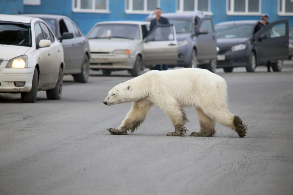 Globalno zagrevanje i klimatske promene uništile su ledene površine koje nastanjuju polarni medvedi zbog čega su životinje prisiljene da hranu potraže na kopnu, dolazeći tako u blizak kontakt s ljudima u naseljenim mestima.