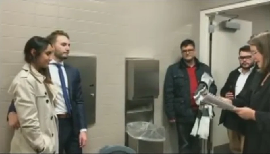 Da su Brajan (26) i Marija (21) odložili venčanje, morali bi da čekaju 45 dana za novu dozvolu, pa je jedan od službenika suda predložio ceremoniju u toaletu.