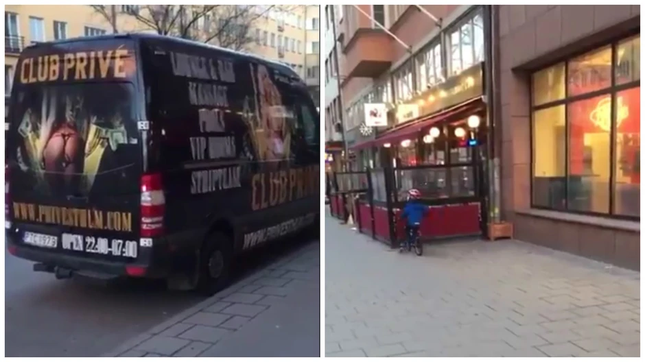Jedan mališa je spokojno vozio svoj bicikl na ulicama Stokholma, a onda je ugledao veliki autobus izlepljen reklamama za striptiz klub.