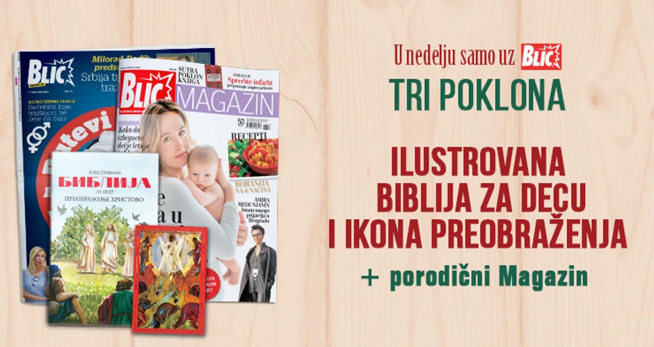 U nedelju 19. avgusta, "Blic" obeležava Preobraženje i uz porodični magazin donosi još 2 poklona: Ilustrovanu Bibliju za decu i Ikonu Preobraženja.