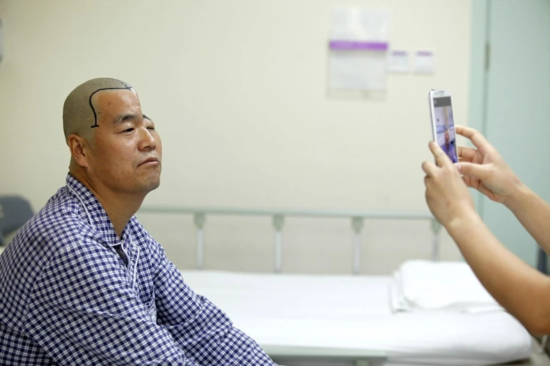 Čovek predstavljen samo kao Hu (46) pre deset meseci pao je sa građevinske skele na poslu sa visine trećeg sprata i pretrpeo ozbiljne povrede glave, lobanje i mozga zbog čega slabo vidi na levo oko, ne može da govori i piše, ali mu je hod očuvan. Zbog ozbiljnosti povreda, doktori su morali da mu uklone deo mozga i glave što je ostavilo nakaradno udubljenje sa leve strane temeno-čeonog dela.