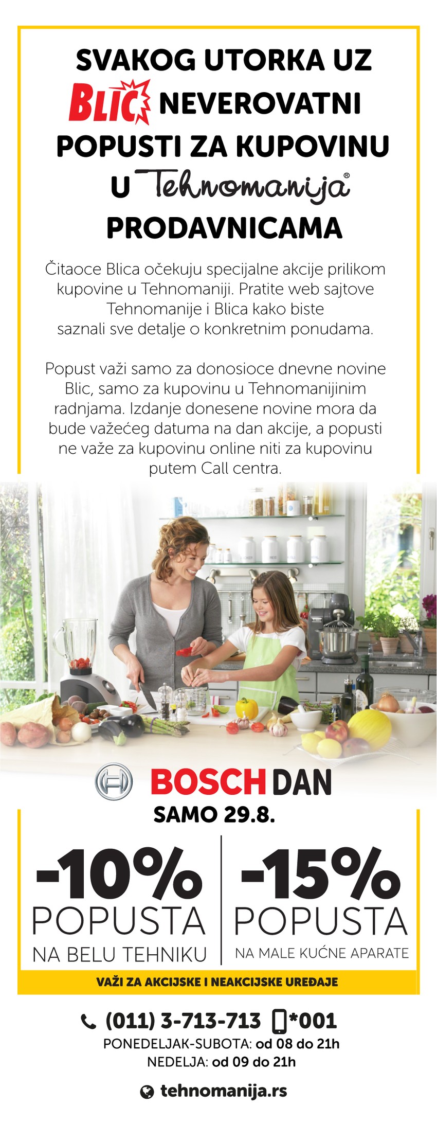 Čitaoce Blica očekuju specijalne akcije prilikom kupovine u Tehnomaniji. U utorak, 29.avgusta Bosch dani.