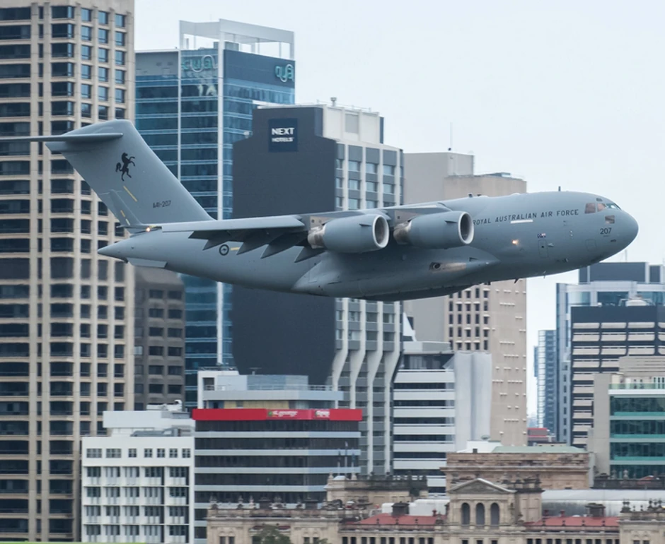 Avion Australijskog Kraljevskog ratnog vazduhoplovstva (RAAF) prestravio je ljude koji rade u visokim poslovnim zgradama u Brizbejnu kada im se tokom aeromitinga približio na svega nekolko metara.