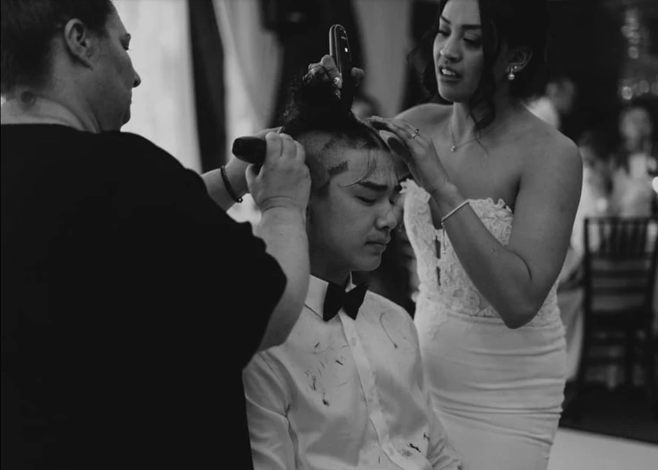 Alister je seo na stolicu, a mlada je počela da ga šiša. Zatim, dok se sala ispunila kombinacijom smeha i suza, par je zamenio mesta, pa je mladoženja počeo da šiša mladu. Luna je ubrzo shvatila da se radi o solidarnom, dirljivom gestu, pa im se pridružila na podijumu.