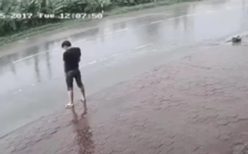 Jednog muškarca snimile su nadzorne kamere kako izlazi iz lokala, staje na bankinu, otkopčava šlic i nonšalantno urinira nasred puta kojim prolaze automobili.